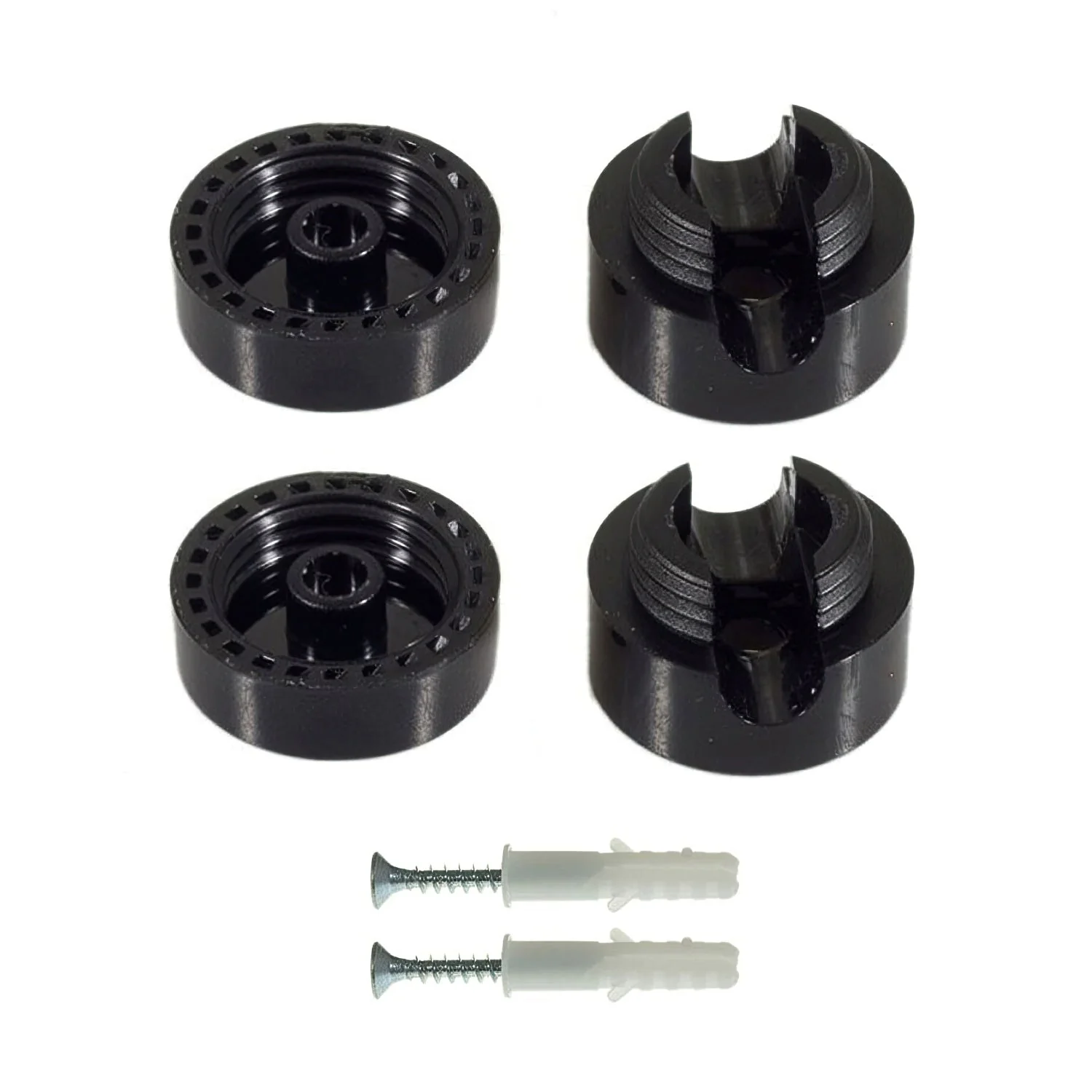 Fixation murale passe-câble universelle en PC noir pour câble textile. Diamètre 2,2 cm. Le serre-câble est livré avec vis et cheville murale Ø 4 mm.