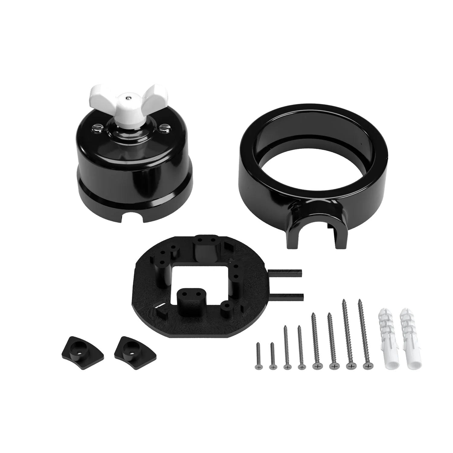 Kit interrupteur/va-et-vient avec écrou papillon et base pour Creative-Tubes en porcelaine noire